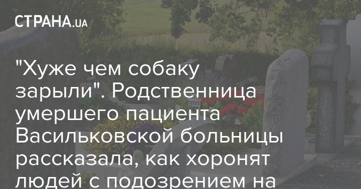 "Мой сват был активным по жизни человеком, в Василькове его знали, он работал заместителем директора Васильковского хлебокомбината, а его, простите, хуже чем собаку зарыли. Более того, дали выписку, где указано имя зятя, то есть, похоронили по документам живого человека", - рассказала Валентина Васильевна.