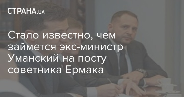 Руководитель Офиса президента Украины Андрей Ермак сообщил, что недавно освобожденный от должности министра финансов Украины Игорь Уманский назначен его официальным советником. Он будет заниматься ситуаций с возможной коррупцией в таможенных и налоговых органах.