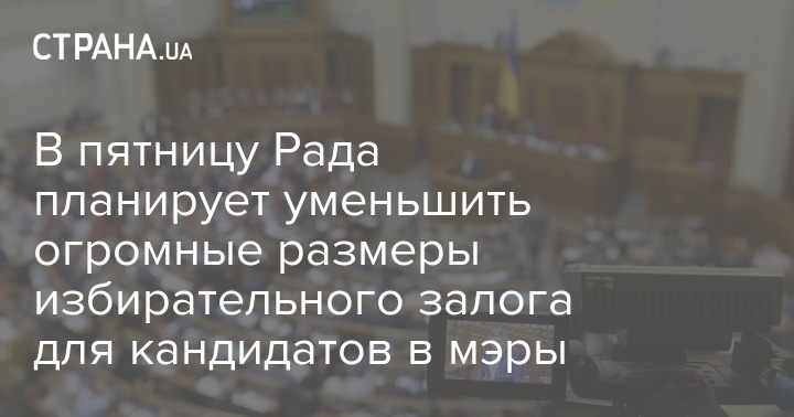 На внеочередном заседании Верховной Рады, назначенном на пятницу, депутаты собираются рассмотреть изменения в Избирательный кодекс. Они обсудят поправки, которые касаются размера денежного залога для кандидатов в мэры и депутаты местных советов.