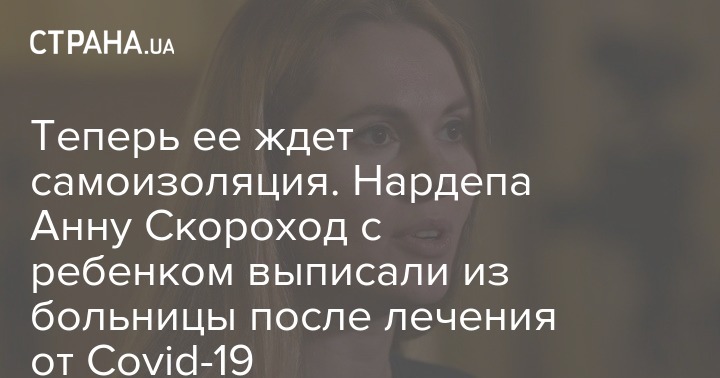 Народного депутата Анну Скороход с 2-месячным сыном выписали из больницы после лечения от коронавируса. Вместе с ребенком они должны оставаться на самоизоляции до тех пор, пока два ПЦР-теста подряд на Covid-19 не дадут отрицательный результат.