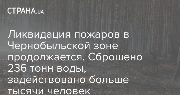 В Киевской области, 24 апреля в 9:00, пожар вблизи села Рассоха в зоне отчуждения на территории Дитяткивського лесничества локализован. Основные усилия сейчас направлены на локализацию двух ячеек (с. Кривая Гора и с. Рудьки - с. Буряковка), где тлеют пеньки, остатки древесины и торфяники.