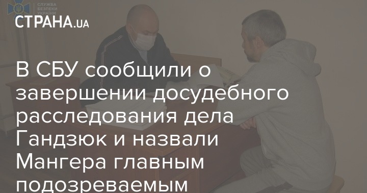 СБУ под процессуальным руководством Офиса генпрокурора завершила досудебное расследование в уголовном производстве по подозрению председателя Херсонского облсовета Владислава Мангера и помощника-консультанта депутата этого же совета Алексея Левина в организации убийства Екатерины Гандзюк