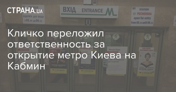 Кличко переложил ответственность за открытие метро Киева на Кабмин
