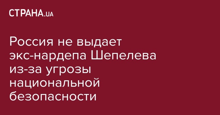 "Месяц назад РФ официально отказала в выдаче Шепелева украинской стороне, сославшись на ст.19 Конвенции о правовой помощи 1993 года - выдача лица вредит интересам нацбезопасности РФ", - написал заместитель генпрокурора, добавив, что это редкий случай - ранее такой формулировки Россия для отказа в выдаче не использовала.