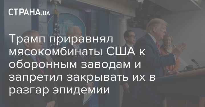 Президент Дональд Трамп пошел на очередной шаг, что бы смягчить последствия эпидемии коронавируса для экономики США и социума. Глава Белого дома подписал указ со ссылкой на закон об оборонном производстве, которым мясоперерабатывающим заводам предписано оставаться открытыми во время эпидемии Covid-19.