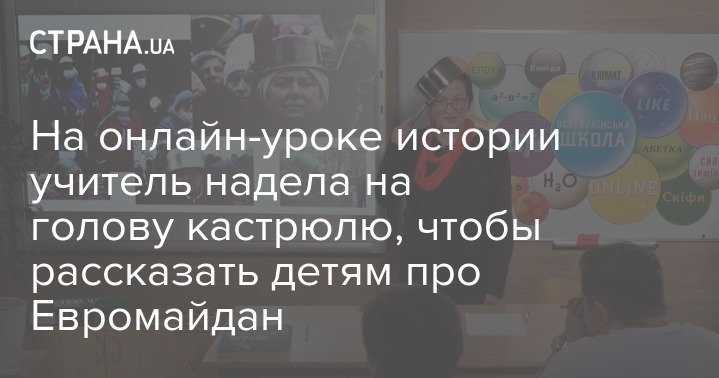 На уроке истории Украины для пятого класса в рамках "Всеукраинской школы онлайн", которая создана для дистанционного обучения школьников на карантине, учитель истории надела на голову кастрюлю. Она рассказывала детям про Майдан и войну на востоке.