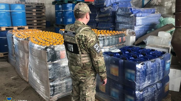 При обыске на месте изготовления подпольного продукта сотрудники СБУ обнаружили оборудование для изготовления и розлива фальсифицированного антисептического раствора, более 13 тонн спиртовой смеси, в частности этиловый спирт, антифриз, глицерин, наклейки, пластиковые емкости, две печати, антисептический раствор и примерно 30 тонн горюче-смазочных материалов неизвестного происхождения.