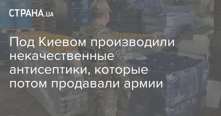 Военная контрразведка Службы безопасности Украины обнаружила под Киевом цех по производству некачественных антисептических средств. Их продавали в том числе для Вооруженных сил Украины, где уже больше 60 зараженных коронавиусом.