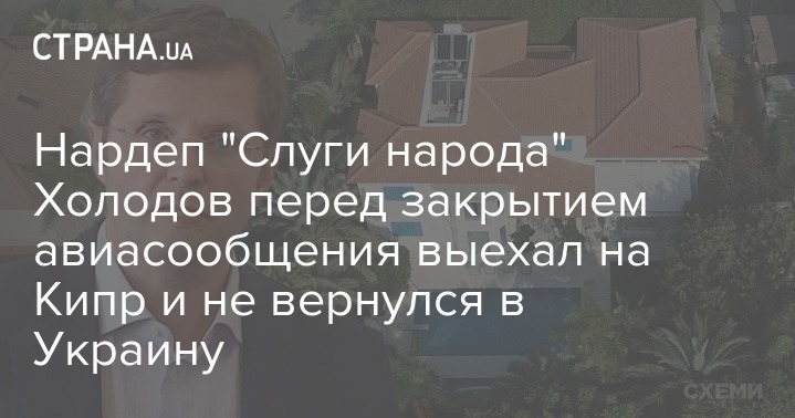 Народный депутат от "Слуга народа" Андрей Холодов, на которого в НАБУ открыли уголовное дело после журналистского расследования табачного бизнеса нардепа, выехал на Кипр с началом карантина и с тех пор не возвращался в Украину.