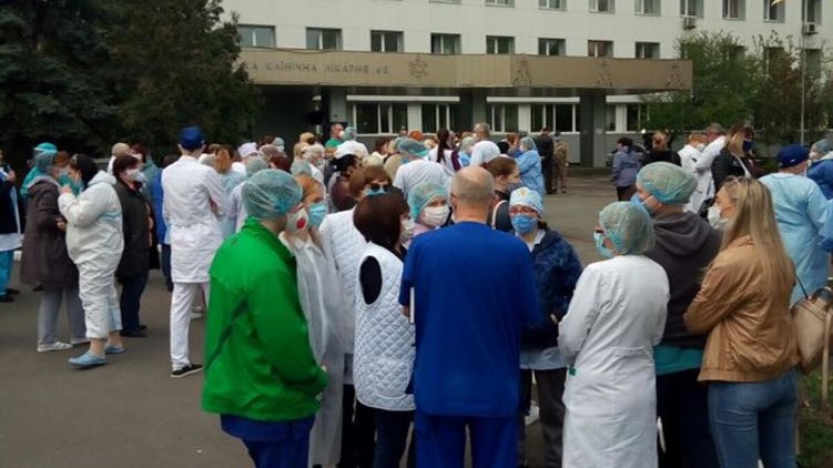 В Киеве медработники Киевской городской клинической больницы №8 в Оболонском районе устроили забастовку из-за отсутствия обещанных доплат к зарплатам. Медики отказываются работать за три-пять тысяч гривен в условиях эпидемии коронавируса.