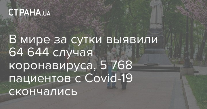 В мире за сутки выявили 64 644 случая коронавируса, 5 768 пациентов с Covid-19 скончались