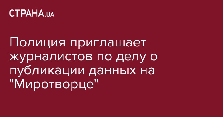 В ГУ Нацполиции Киева сообщили о том, что приглашают журналистов, данные которых были обнародованы на скандальном сайте "Миротворец", чтобы получить показания в рамках расследования. Об этом сообщает пресс-служба полиции