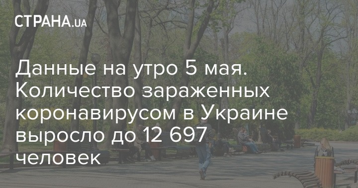 По состоянию на утро вторника, 5 мая, в Украине зафиксировано уже 12 697 случай заражения коронавирусом Covid-19. Вчера, 4 мая, этот показатель составлял 12 331 случай. Новых эпизодов заражений - 366.