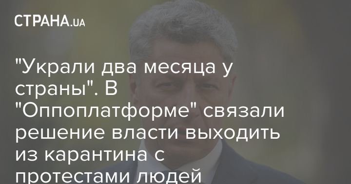 "Два месяца людей держали на самоизоляции, полиция ловила и штрафовала возле ботсадов и парков. Гражданам и предпринимателям грозили за нарушение карантина административными и уголовными делами. Люди сидели дома, а власть просто наблюдала, как падает промышленность и сельское хозяйство, как закрываются "чужие" кафе, парикмахерские и магазины, а "свои" продолжали работу. Когда терпение людей лопнуло и начались протесты – решили "смягчать" карантин. При этом совершенно не представляя, что будет дальше", - сказал Юрий Бойко.