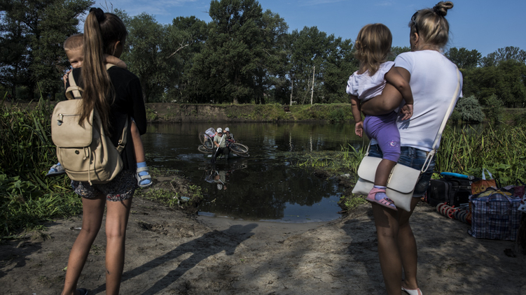 В Луганской области действует неофициальная переправа через реку Северский Донец, с помощью которой местные жители привозят себе продукты и проведывают родственников по другую сторону линии фронта, на некоторых участках которого река .