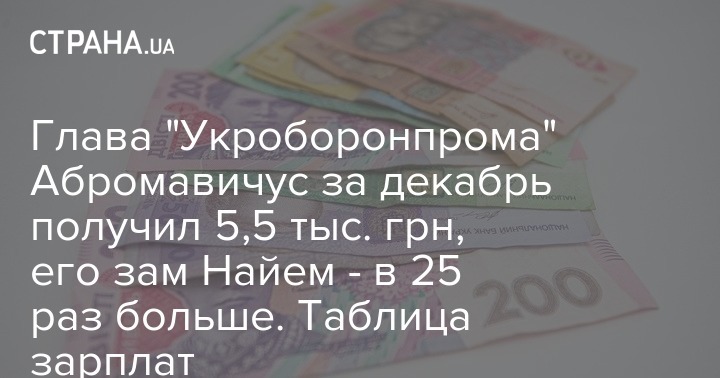Генеральный директор "Укроборонпрома" Айварас Абромавичус за декабрь прошлого года получил зарплату в 5,5 тыс. грн, а его заместитель Мустафа Найем - в 25 раз больше