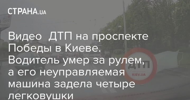 Видео ДТП на проспекте Победы в Киеве. Водитель умер за рулем, а его неуправляемая машина задела четыре легковушки