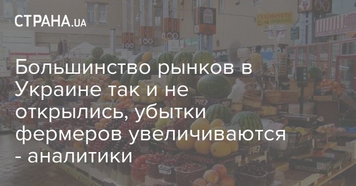 Несмотря на объявленные смягчения карантина в Украине, большинство продовольственных рынков в стране так и не возобновило свою работу. Это, в свою очередь, приводит, к дальнейшему росту убытков украинских производителей сельхозпродукции.