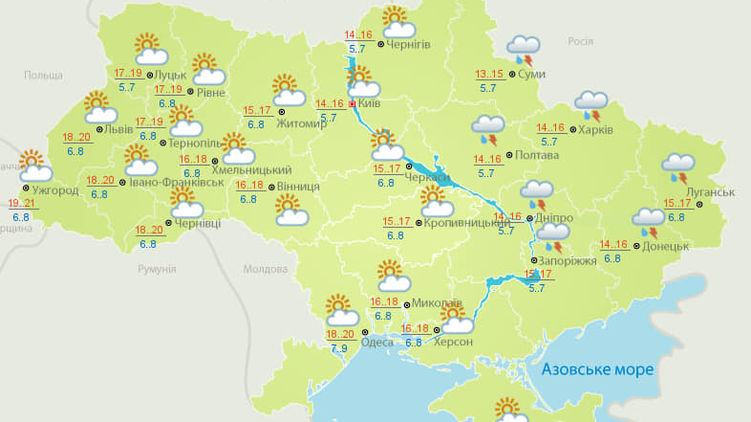 В праздничный день 9 Мая тепло порадует жителей западных и южных регионов Украины, а осадки с грозами ожидаются на востоке.