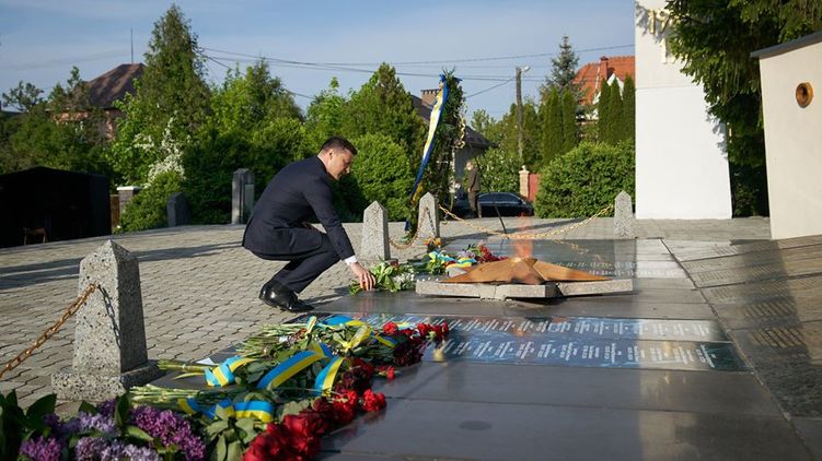 В День победы над нацизмом во Второй мировой войне, 9 мая, Зеленский приехал на Закарпатье. Глава государства посетил мемориальный комплекс "Холм Славы" в Ужгороде. Там находятся могилы воинов, которые погибли в боях за освобождение Украины нацистских оккупантов.