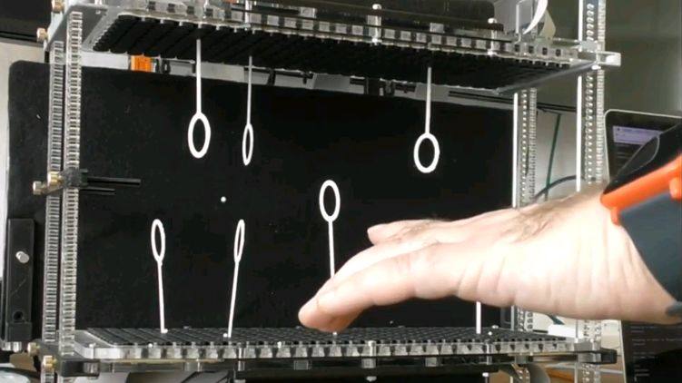 Британские инженеры разработали прототип игрового автомата, работающего на основе принципа ультразвуковой акустической левитации. Он состоит из колец, через которые игрок может проводить рукой парящий в воздухе шарик издалека.
