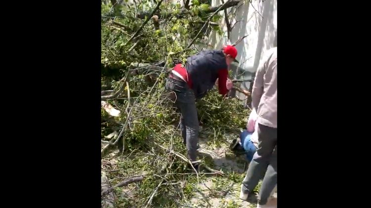В Харькове дерево травмировало мужчину. Скриншот из видео