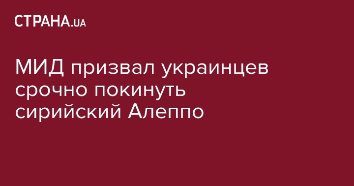 Министерство иностранных дел Украины призывает всех граждан Украины, находящихся на территории сирийского города Алеппо, покинуть территорию в срочном порядке. Об этом на официальной странице в социальной сети Facebook сообщает посольство Украины в Сирии.
