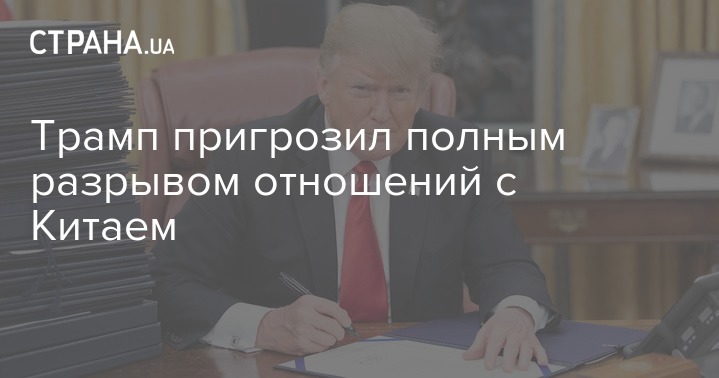 Американский президент Дональд Трамп заявил, что США могут полностью прекратить отношения с Китаем в случае проблем с этой страной.