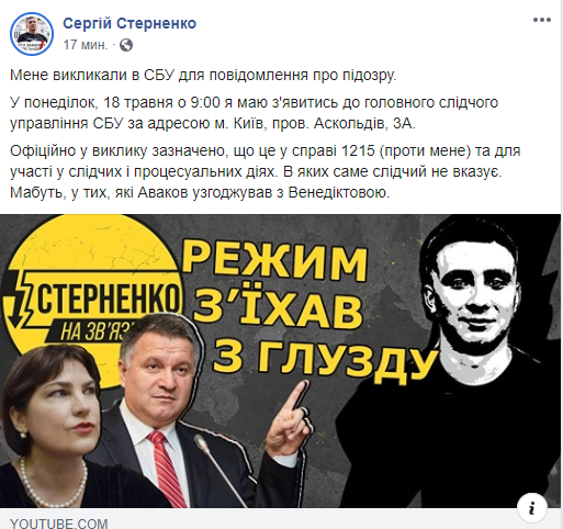 Об этом сам Стерненко сообщил на своей странице в Facebook.