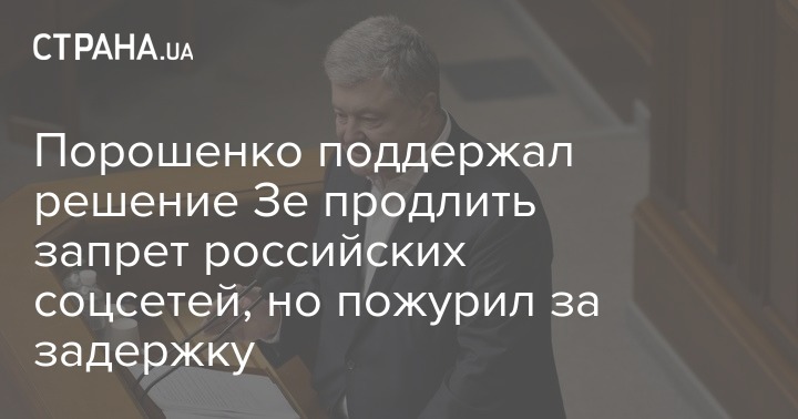 "Указ президента продлить запрет российских соцсетей в Украине, впервые внедренный моей командой три года назад, считаю правильным. Но странно, почему тянули до последнего дня? Что выжидал Офис президента и почему медлил - вопросы открытые", - написал Порошенко.
