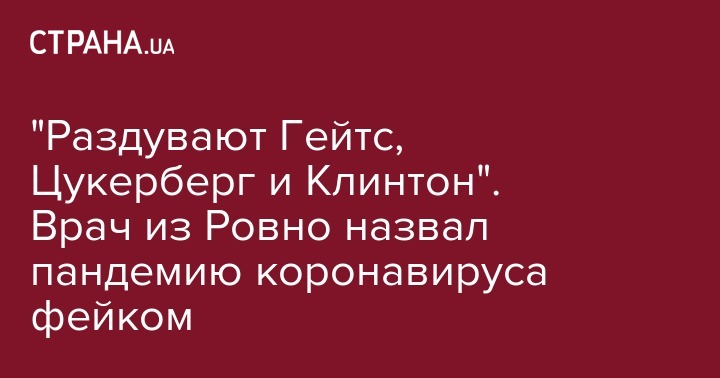 "Раздувают Гейтс, Цукерберг и Клинтон". Врач из Ровно назвал пандемию коронавируса фейком