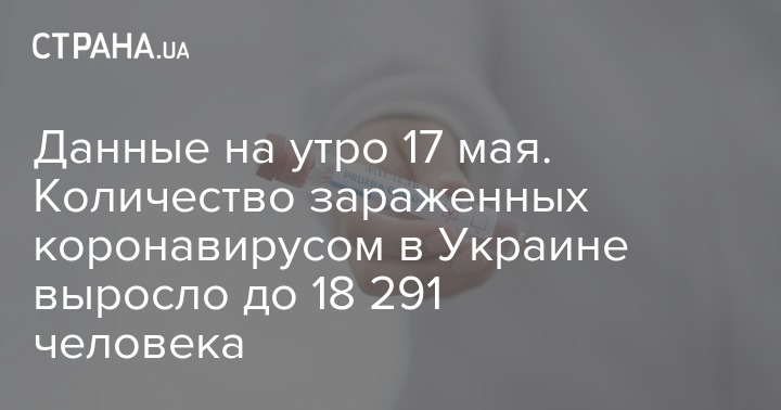 По состоянию на утро воскресенья, 17 мая, в Украине выявили уже 18 291 случай инфицирования коронавирусом. В это же время вчера, 16 мая, сообщалось о 17 858 случаях. За сутки выявлено 433 новых заболевших. Умерло 17 человек.