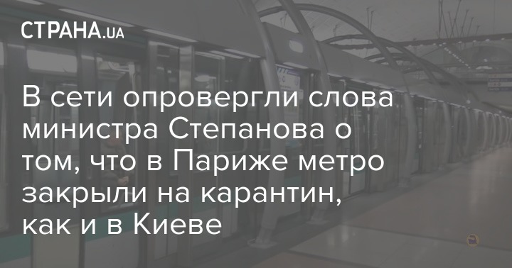 Сегодня, 17 мая, во время брифинга министр здравоохранения Максим Степанов заявил, что метрополитен закрыли на карантин не только в Украине. Он сказал, что подземка не работает также в Париже и некоторых других городах планеты. Однако, эти слова министра опровергли в соцсетях.
