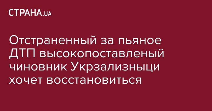 Отстраненный за пьяное ДТП высокопоставленый чиновник Укрзализныци хочет восстановиться