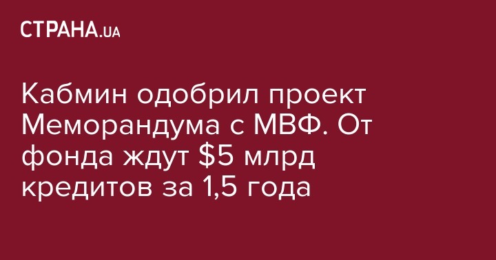 Кабинет министров Украины одобрил проект Меморандума с Международным валютным фондом (МВФ).