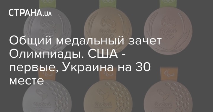 Общий медальный зачет Олимпиады. США - первые, Украина на 30 месте
