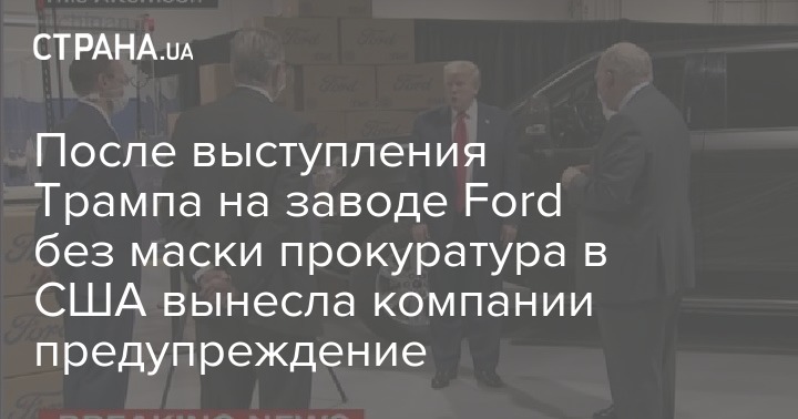 После выступления Трампа на заводе Ford без маски прокуратура в США вынесла компании предупреждение