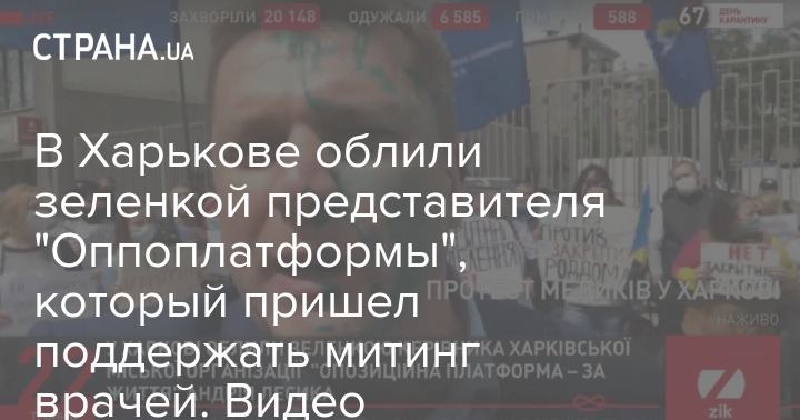 Неизвестные в Харькове облили зеленкой главу городского отделения "Оппозиционной платформы - За жизнь" Андрея Лесика во время того как он поддержал акцию медиков.