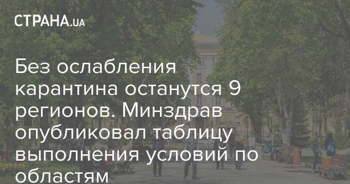 Без ослабления карантина останутся 9 регионов. Минздрав опубликовал таблицу выполнения условий по областям
