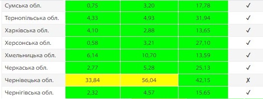 Минздрав опубликовал таблицу выполнения условий адаптивного карантина по областям страны, которая говорит о готовности к переходу на второй этап ослабления карантина. Данные будут ежедневно обновляться, чтобы каждый украинец видел, сколько осталось до конца ограничений в его регионе или городе.