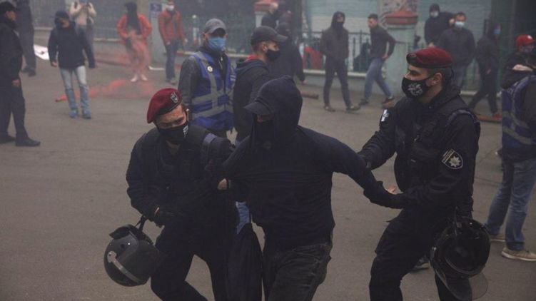 Полиция задержала нескольких протестующих членов Нацкорпуса под офисом ОПЗЖ. Фото: nationalcorps.org