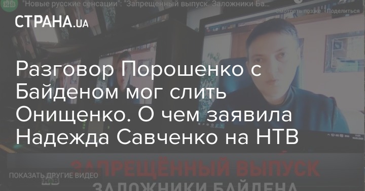 Журналисты подали интервью с Надеждой Савченко в продолжение истории с Александром Онищенко. Неделю назад он тоже поговорил с НТВ. По видеосвязи из немецкой тюрьмы рассказал, что атакой на него стоят демократы США, Петр Порошенко и американский инвестор Джордж Сорос, а также обратился к канцлеру Ангеле Меркель с просьбой не выдавать его Украине и сообщил о неком козыре в рукаве - подробно в нашем материале