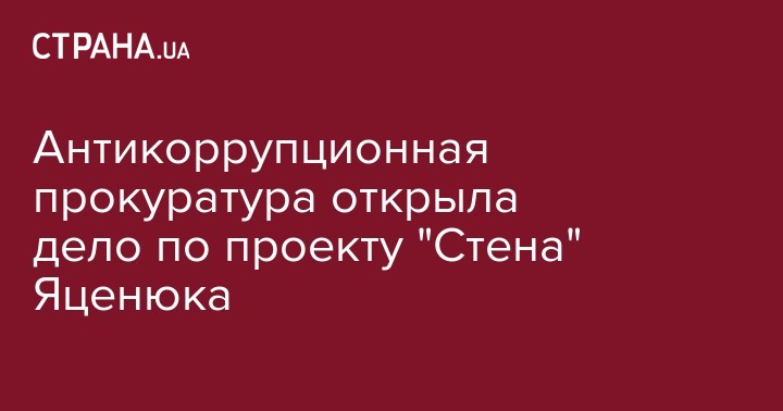Антикоррупционная прокуратура открыла дело по проекту "Стена" Яценюка
