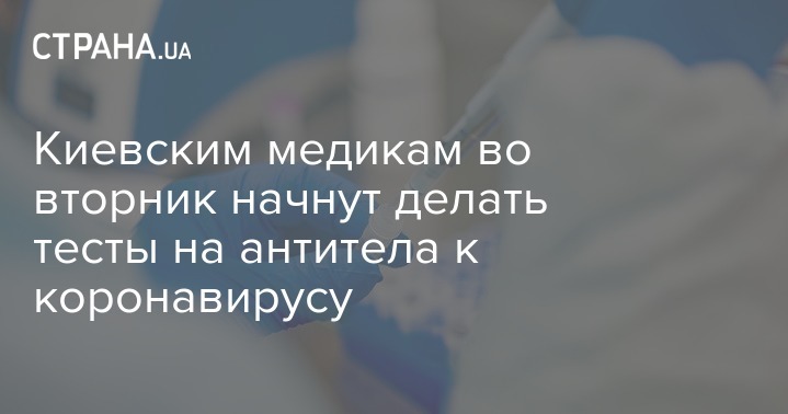 Киевским медикам во вторник начнут делать тесты на антитела к коронавирусу