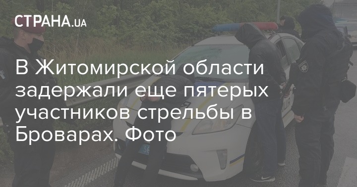 В Житомирской области были задержаны еще пятеро участников перестрелки, которая сегодня произошла в Броварах. Всего после происшествия полиция задержала 16 человек.