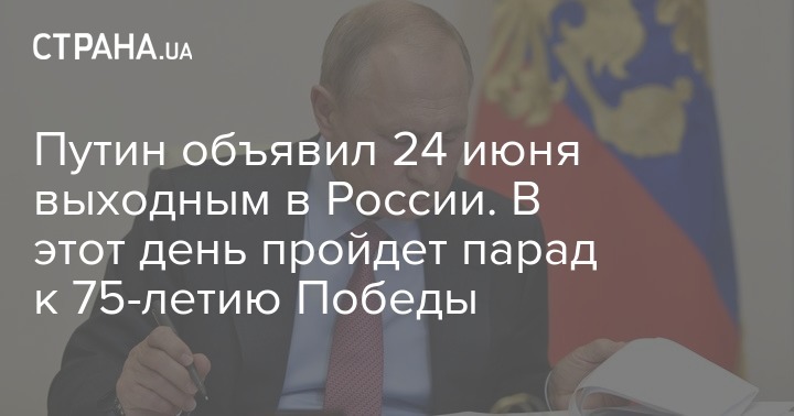 Президент Росии Владимир Путин объявил выходным день проведения парада к 75-летию победы в Великой Отечественной Войне. Мероприятие намечено на 24 июня.