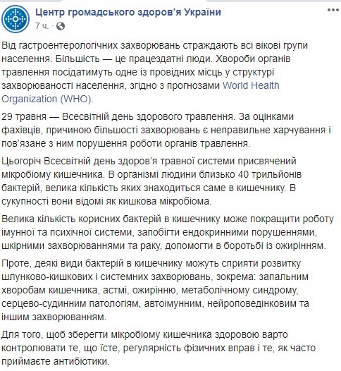 Об этом сообщает Центр общественного здоровья в Facebook.