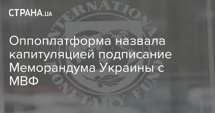 "Оппозиционная платформа - За жизнь" требует от Кабинета Министров публично отчитаться перед парламентом о параметрах Меморандума с МВФ и раскрыть все взятые властью обязательства.
