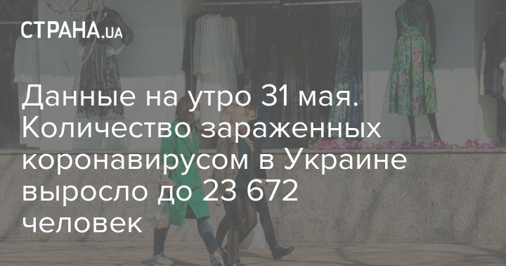 По состоянию на утро воскресенья 31 мая, в Украине выявили уже 23 672 случая коронавируса. Вчера, 30 мая, сообщалось о 23 204 пациентах с Covid-19. За сутки в стране зафиксировали 468 новых пациента.