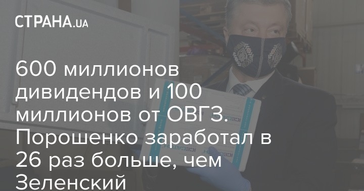600 миллионов дивидендов и 100 миллионов от ОВГЗ. Порошенко заработал в 26 раз больше, чем Зеленский